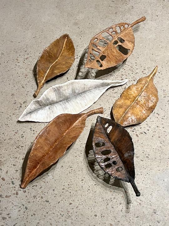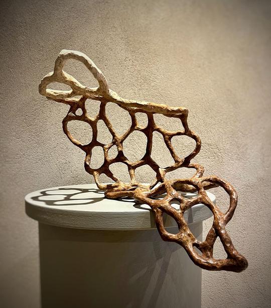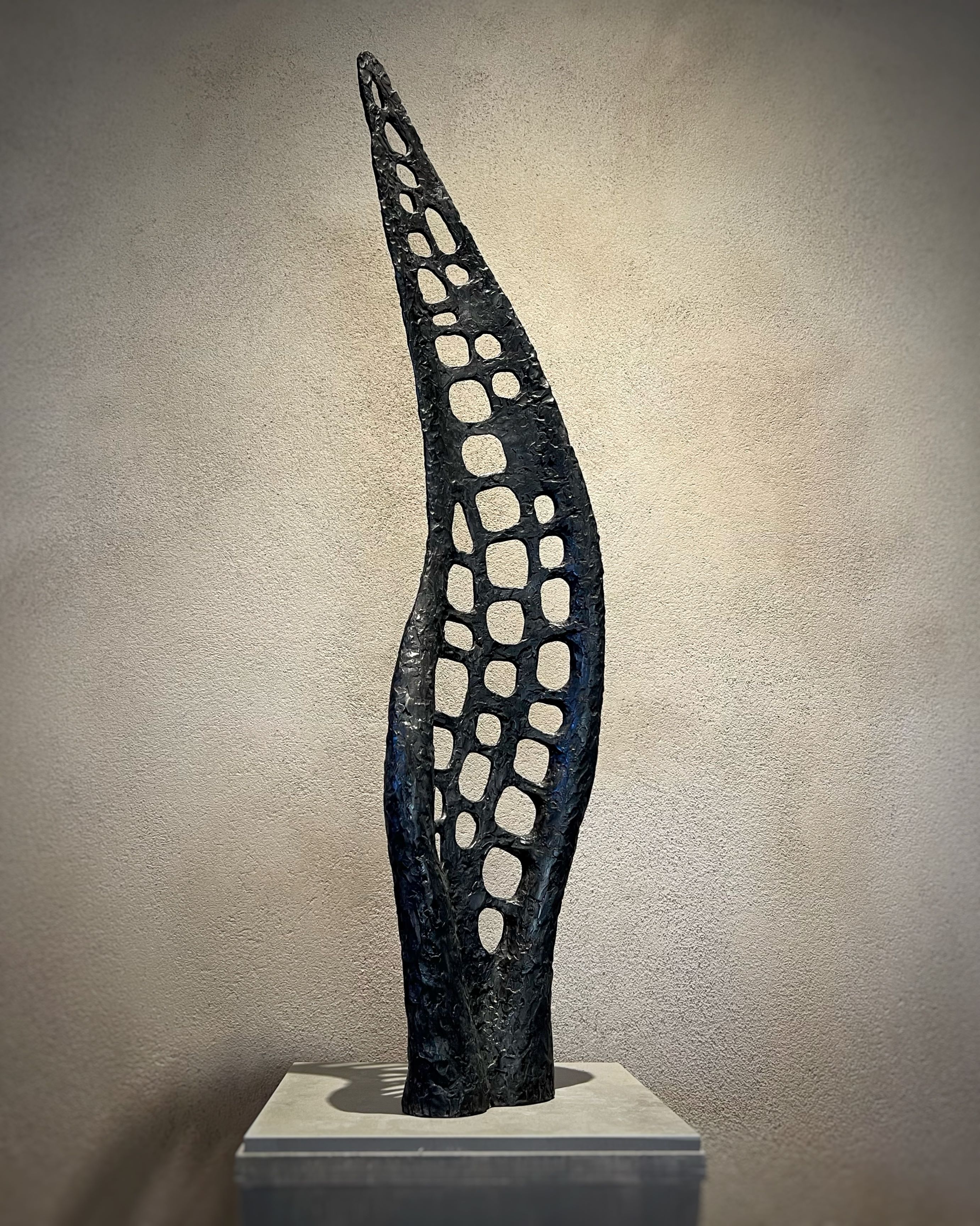 Akrylharts är mitt favoritmaterial men jag arbetar även med keramik, trä, metall, textil, papper och återbruksmaterial. För sig själva eller blandade beroende på vad jag vill uttrycka. Jag älskar patina och experimenterar mycket med olika typer av färger och vaxer för att få fram intressanta texturer och ytor. Mina skulpturer är både figurativa och abstrakta, gestaltade som dekorativa objekt eller större installationer.